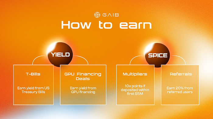 AID(alpha) accrues Spice, a points program that rewards depositors with 1 Spice per USD value per day, leading to benefits at GAIB’s token launch.